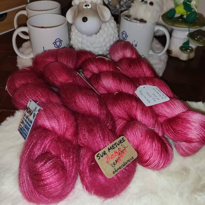 donne la laine mohair, a un poil long et frisé, qui permet un tricot très chaud et super léger. C'est une fibre très très douce et qu'on peut facilement associer à une autre fibre pour un